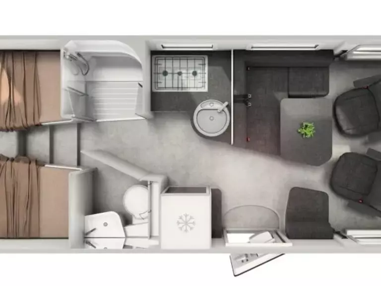 Der HYMER Free bietet drei Grundrisse: Free 540, Free 600 und Free 602, jeweils mit einer Länge ab 541 cm und Schlafplätzen für 2 bis 4 Personen.