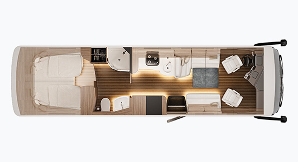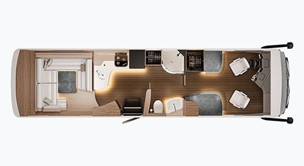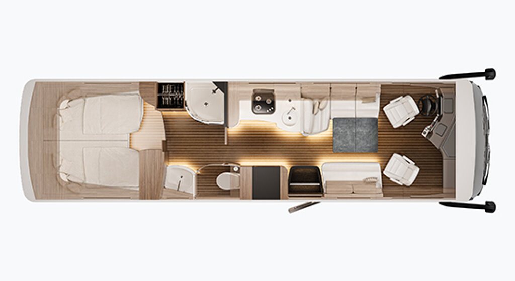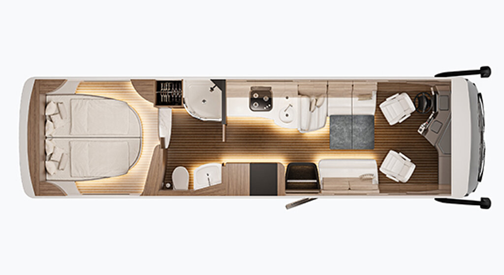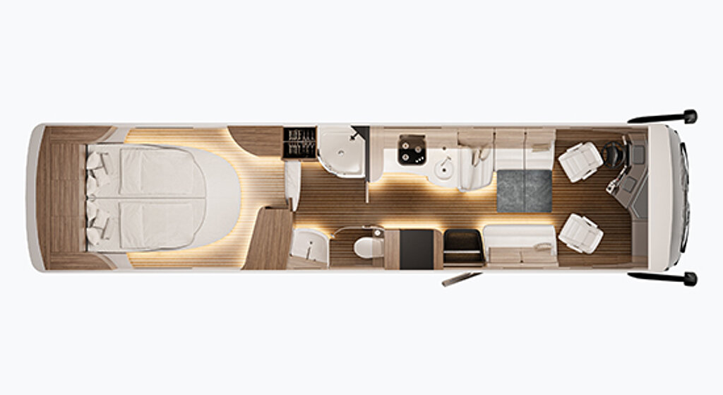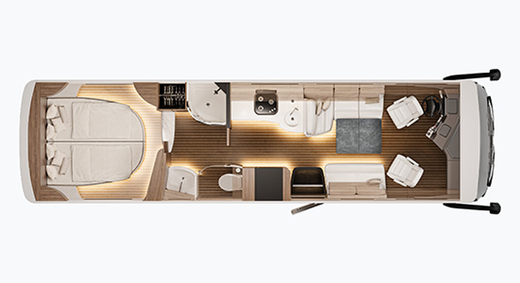 Wenn Sie schon vorab einen Eindruck gewinnen möchten, bietet der virtuelle Rundgang die ideale Möglichkeit: Erkunden Sie die großzügigen Räume bequem von zu Hause aus und erleben Sie, was Luxus-Reisemobilität wirklich bedeutet.